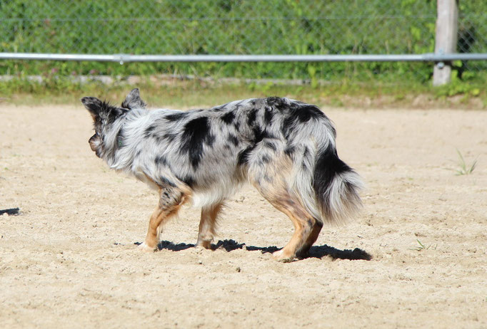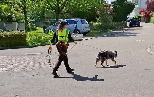 Arun durfte schon bald mit Mantrailing anfangen. Wie nicht anders erwartet liebt auch er diese Art mit der Nase zu arbeiten. Regelmässig darf er diesem "Hobby" fröhnen.
