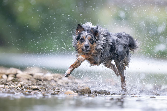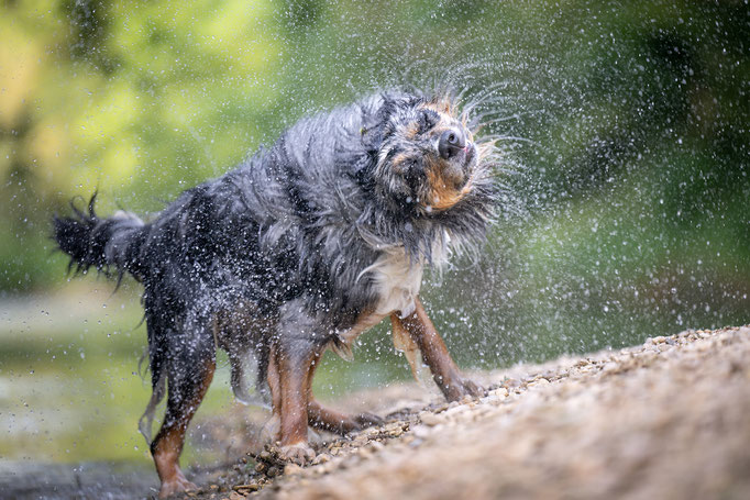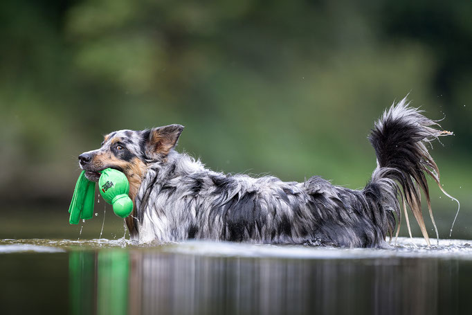 Zur Abwechslung darf er auch mal Fährten, Revieren, Mantrailen. Wir sind dabei ihn auch auf die "Trüffelsuche" auszubilden. Mittlerweile ist er eine richtige Wasserratte.