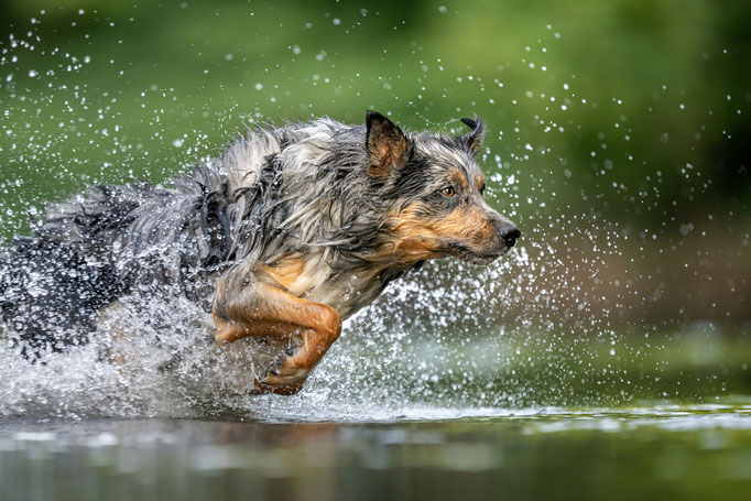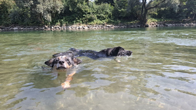 Arun hat im Sommer 2025 das Schwimmen entdeckt. Kein Wunder sein "Gotti" ist auch eine Wasserratte.