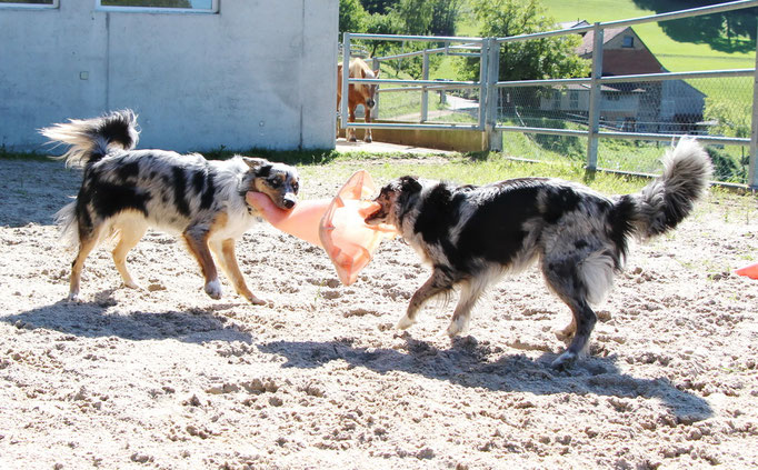 liebsten spielt er mit Black Bee aus dem B-Wurf. Als Mann im Haus hat er auch dazu beigetragen die Welpen grosszuziehen.