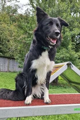 Sportlich sind wir wie mit allen unseren Hunden viel mit Nasenarbeit beschäftigt. Futterbeutelsuche, Revieren, Mantrailen. Bald fangen wir mit dem Aufbau im Agility an. An den Schafen hat sie