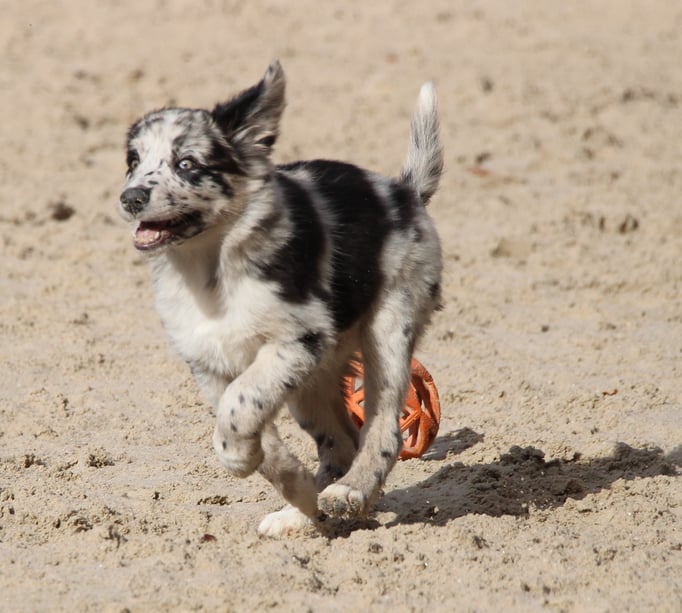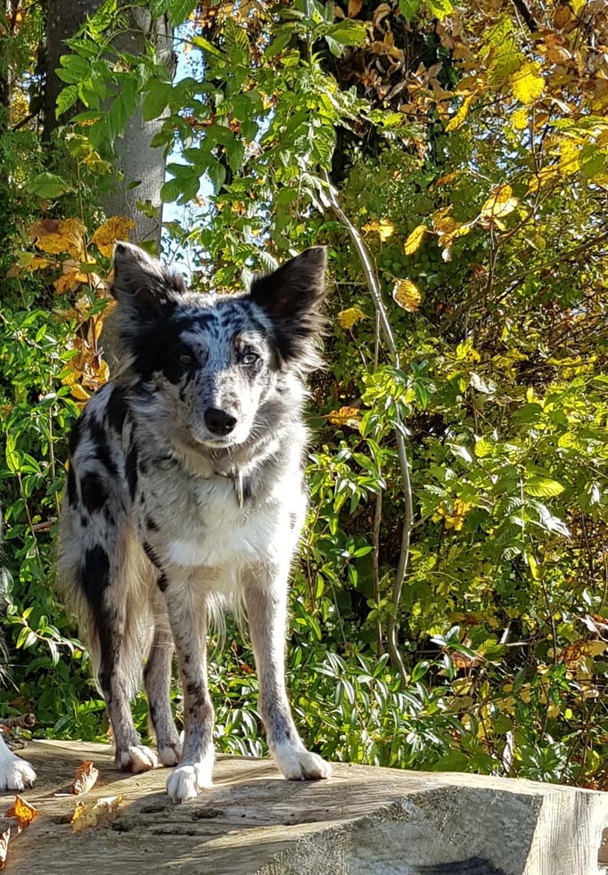 Auf dem Hof hilft sie natürlich die Schafe in Schach zu halten oder mal von einer Weide zur anderen zu treiben. Sie kommt auch sehr gerne als Begleithund mit dem Pferd mit, oder spielt mit ihrem